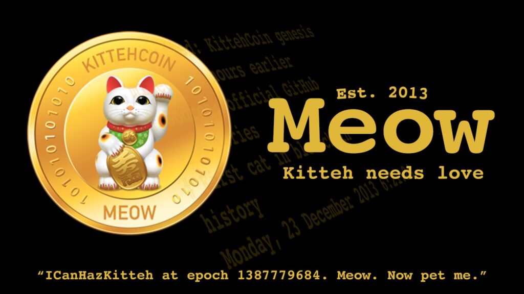 Between 2013 and 2015, KittehCoin circulated among early miners and online crypto forums. It was open-source and community-oriented, emphasizing fun and participation. As the market matured, the project became inactive, though its records remained public — preserving its historical significance as the earliest cat-themed cryptocurrency.